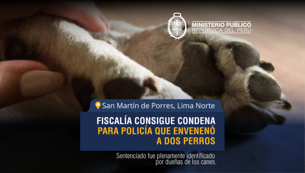 El Primer Despacho de la Sexta Fiscalía Provincial Penal Corporativa de Lima Norte logró que se imponga una sentencia de tres años de prisión contra el policía Fernando Díaz, quien fue declarado culpable del delito de actos de crueldad contra animales domésticos. El fallo se emitió este lunes 5 de enero y está relacionado con un caso ocurrido en el distrito de San Martín de Porres.